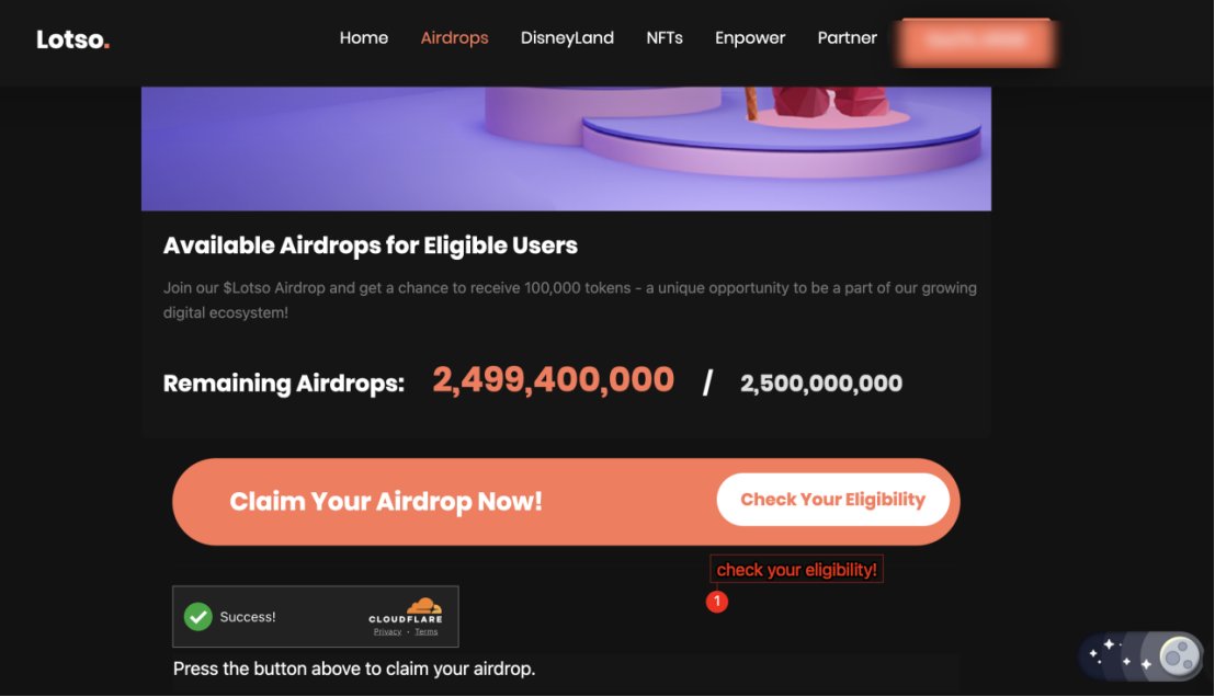 If you have the eligibility, you will be able to claim your own airdrop in the next time period. Website will show you hown long you can claim $Lotso. Patiently wait and claim.